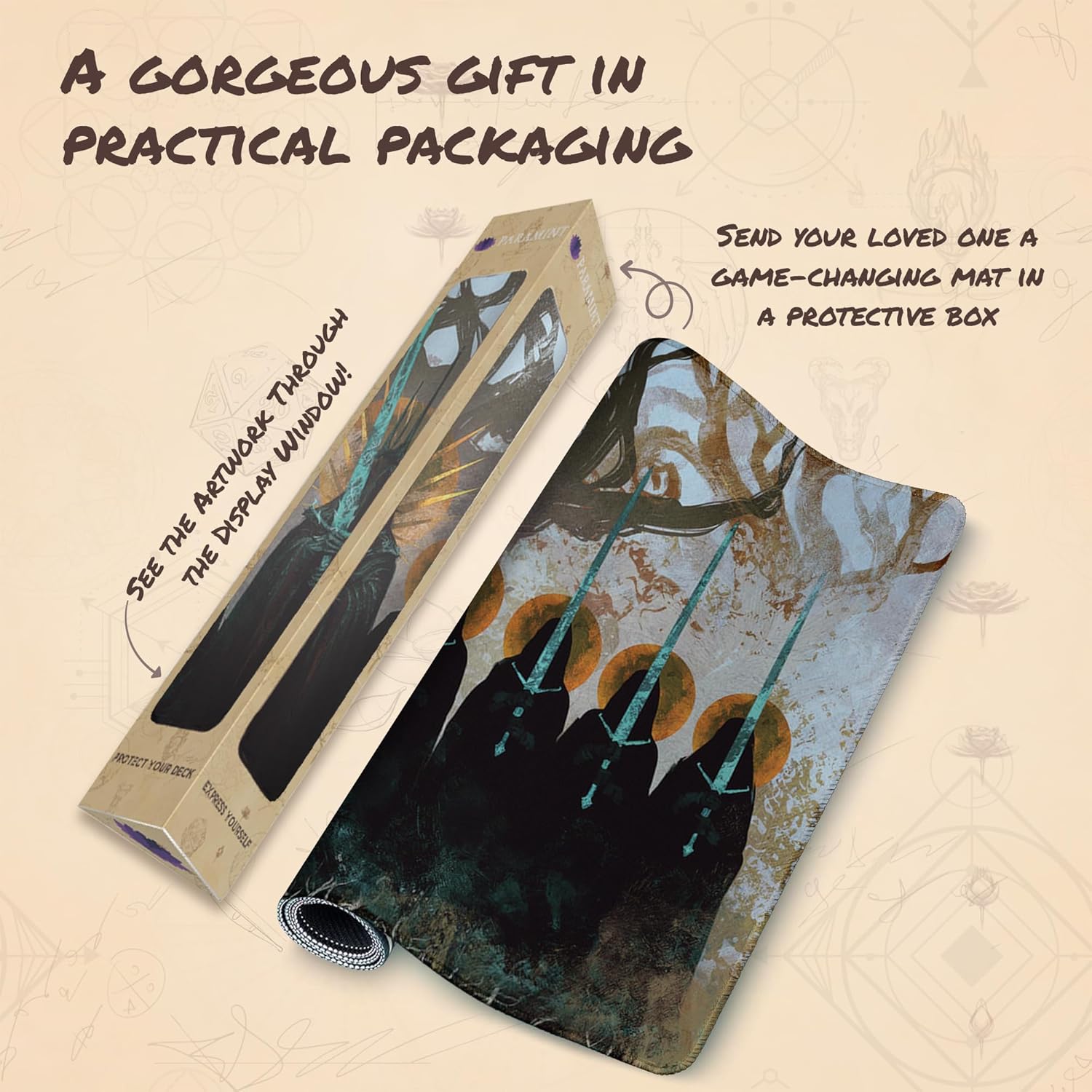 - Una alfombra ideal – Mejora el ambiente de sus partidas, protege sus cartas y organiza combos desenfrenados. Su alfombra de juego de Magic de Paramint cuenta con un arte impresionante.